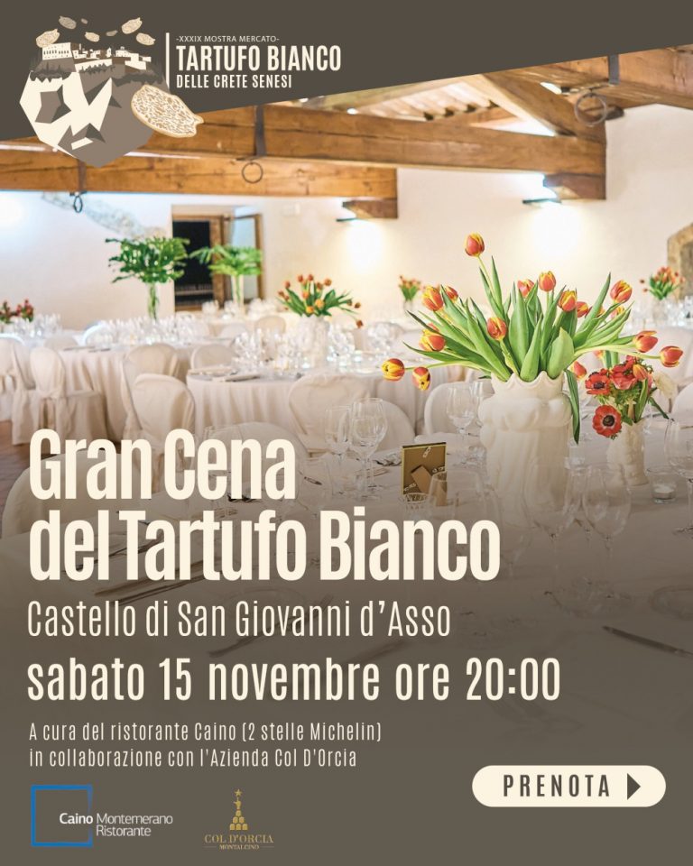 Gran Cena del Tartufo. A cura del Ristorante Caino (2 stelle Michelin) ed in collaborazione con l’Azienda Col D’Orcia (Montalcino)